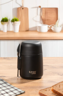 Porsima Paslanmaz Çelik Vakumlu Yemek Termosu Beslenme Kutusu Taşınabilir Lunch Box Sefer Tası Siyah 600ml
