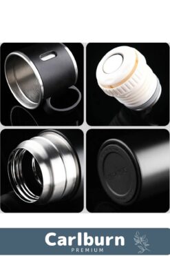 Carlburn Özel Üretim Paslanmaz Çelik 3 Bardaklı Soğuk Sıcak Termos Vakumlu Termos Set Çanta Hediyeli 550 Ml