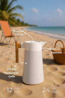 Bambum North Bambu Saplı Çelik Termos Beyaz 2 Litre