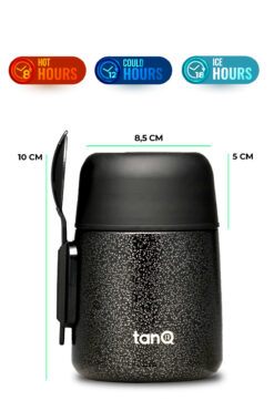 TANQ Ömür Boyu Garantili Bento Çelik Yemek Termosu Titan Black 500 ML