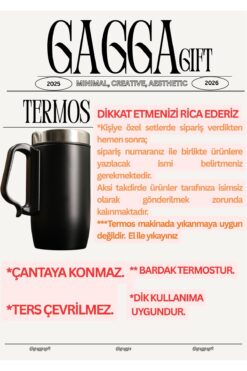 gagga GAGGAGIFT Kişiye Özel Mat Siyah Paslanmaz Çelik Termos Bardak Çay Kahve(DİK KULLANIM)