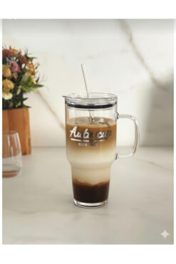 Vovo Concept 1200 ml Büyük Boy Cam Termos – Sızdırmaz Mika Kapaklı, Cam Pipetli Yazılı Bardak