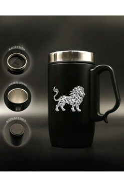 nesnelgift Siyah Çelik Kulplu Bardak Termos – İllistrasyon Aslan Motifli