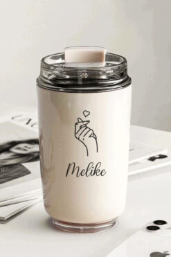 İŞTE BU Kişiye Özel Retro Tarz El Kalp Vakumlu Termos Kupa – 240 ml | Çelik, Isı Koruma Ve Akıtmaz