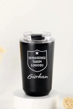 hediyerengi İsme Özel Lüx Çelik Termos Bardak Kulplu 280 ml – Siyah