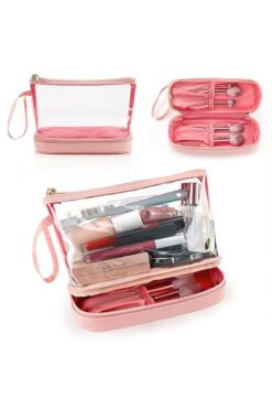 akcaglow Şeffaf Iki Bölmeli Makyaj Çantası
