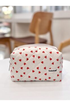 Batekso Kırmızı Kalp Desenli Makyaj Çantası – Orta Boy