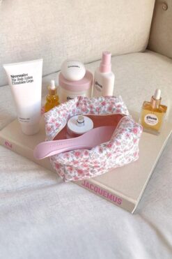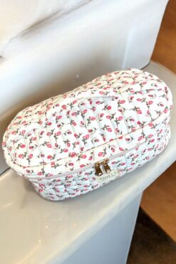 Batekso Minik Pembe Çiçek Desenli Makyaj Çantası – Büyük Boy.