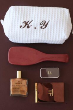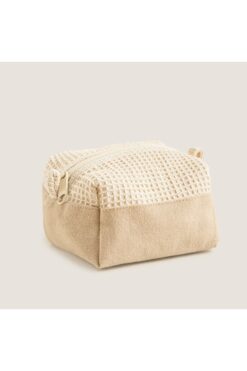 Beige & Stone Pamuklu Waffle Kişiye Özel Makyaj Çantası