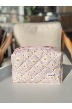 Batekso Toz Pembe Beyaz Papatya Desenli Makyaj Çantası – Büyük Boy