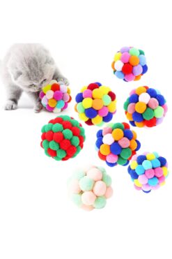 Sdypet Renkli Ponpon Ve Çıngıraklı Top Kedi Oyuncağı 7 cm – 1 Adet