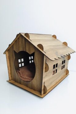 life hobi KLES Ahşap Kedi Evi Dekoratif Kedi Yuvası Kedi Yatağı