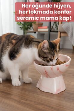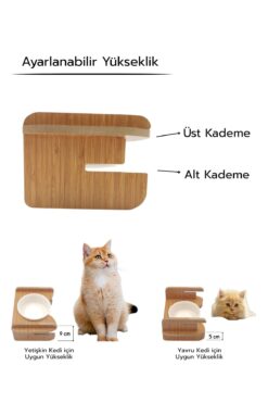 hural ahşap dekorasyon Yüksekliği Ayarlanabilir Seramik Kaseli Tekli Mama, Su Kabı