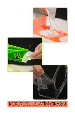 GOBYPET 2’li Seramik Dekoratif Kedi Ve Köpek Pleksi Mama & Su Kabı Paspas