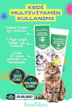BRAVE PAWS Kediler İçin Multivitamin Desteği – Bağışıklık, Enerji ve Genel Sağlık İçin