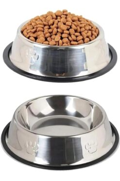 minossa 2 Adet Paslanmaz Çelik Mama Ve Su Kabı, Alt Taban 16 Cm (250 ML-8 OZ)