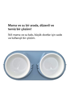 Sevpatik İkili Kedi Köpek Mama Ve Su Kabı – Eğimli Kedi Kulaklı Tasarım Mavi
