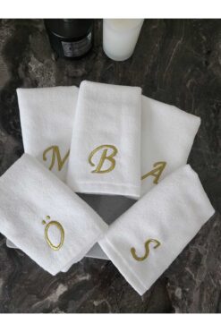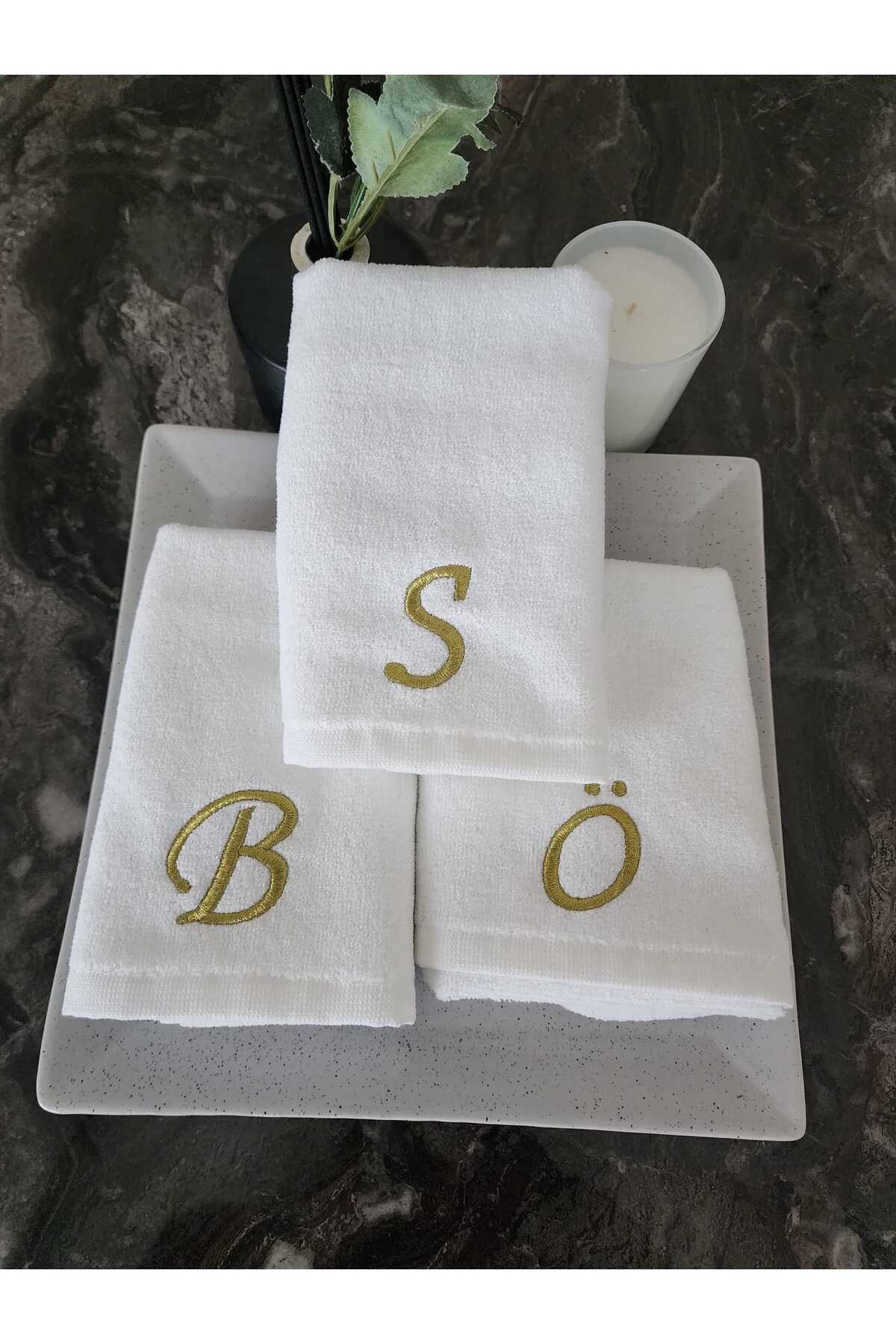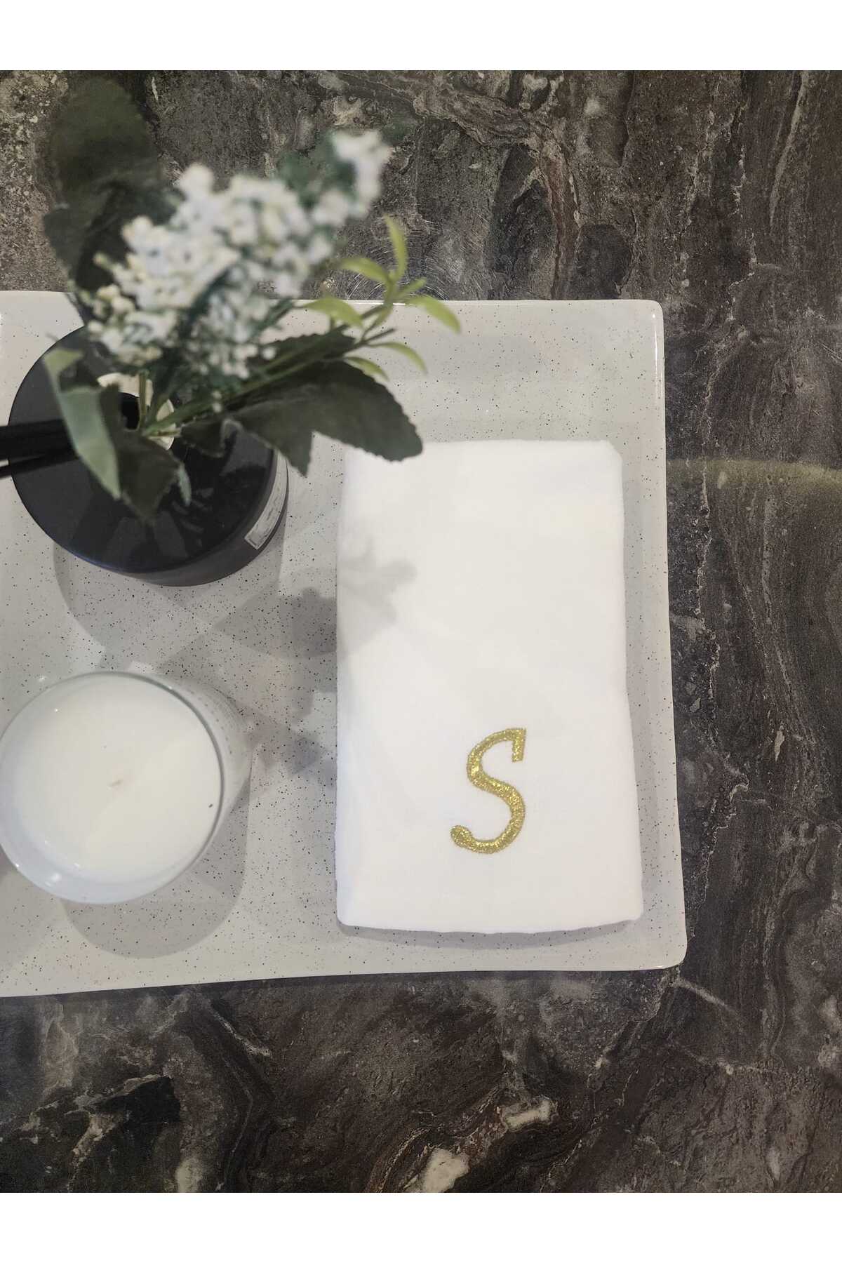 2Ddesign HAVLU kişiye özel harfli nakışlı el havlusu ”S” harfi GOLD SİM İPLİK İLE ÇEYİZLİK HAVLU