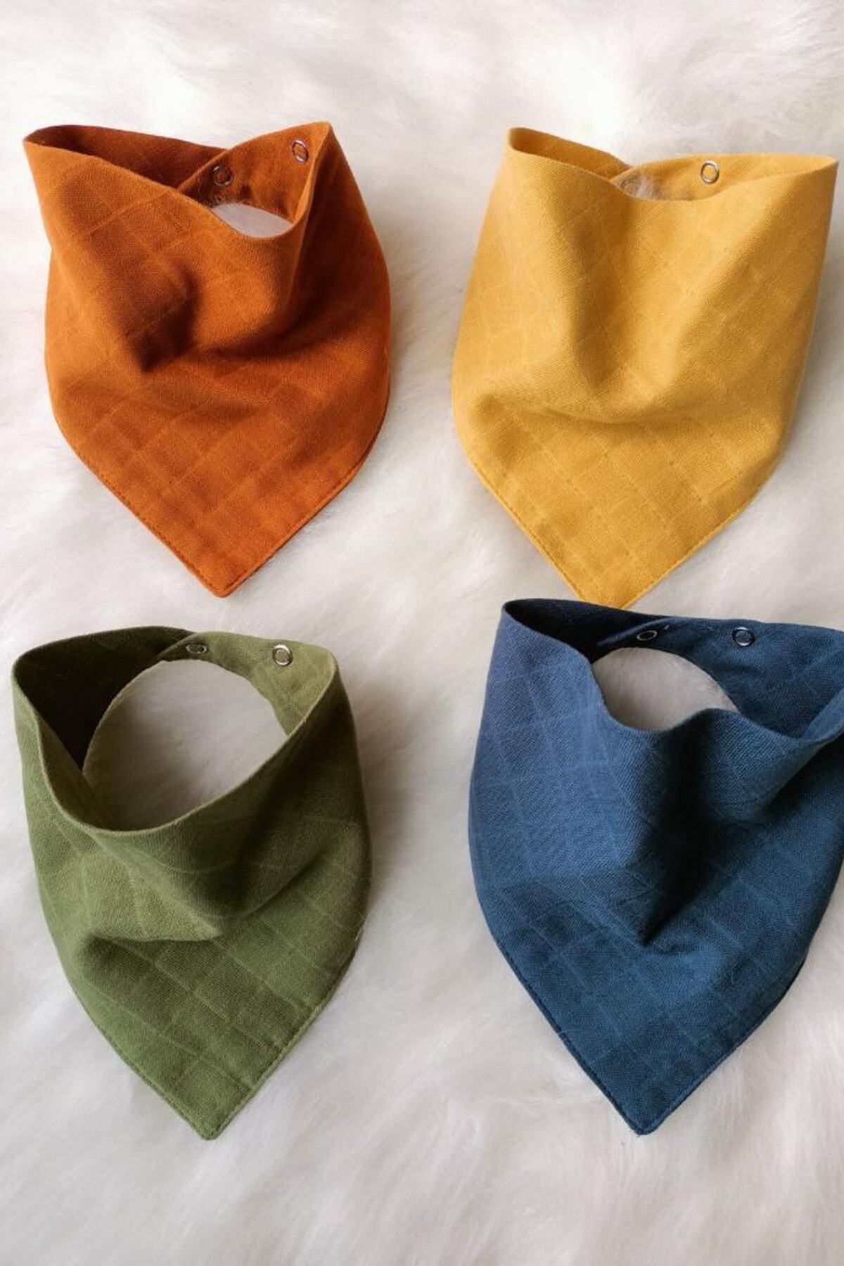 3Baby 4 Adet %100 Organik Pamuk Çift Katlı Iki Çıtçıtlı Müslin Bebek Fular & Salya Önlük