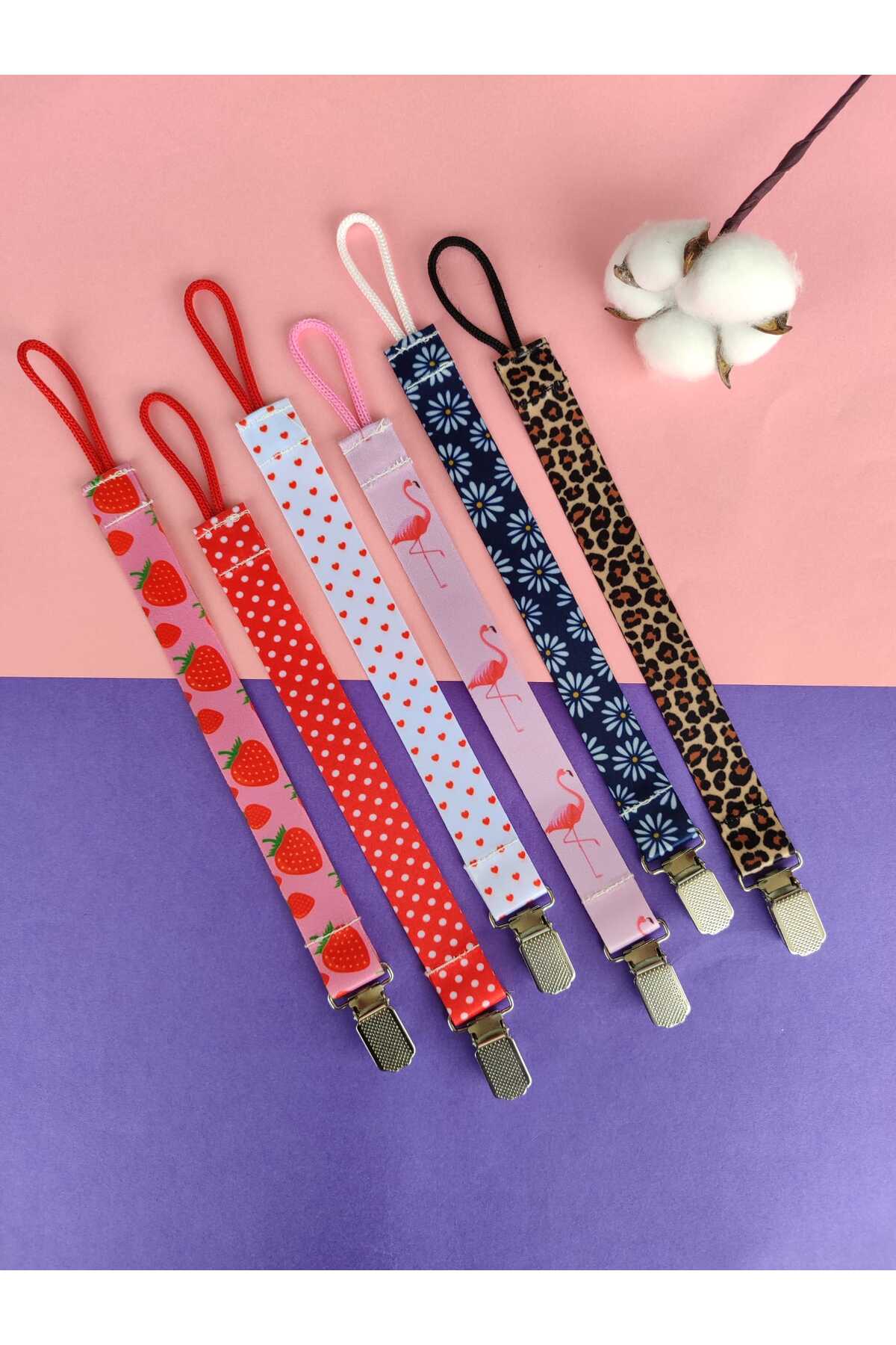 3Baby 6’lı Emzik Askısı Seti / Emzik Tutucu / Emzik Zinciri / Kız