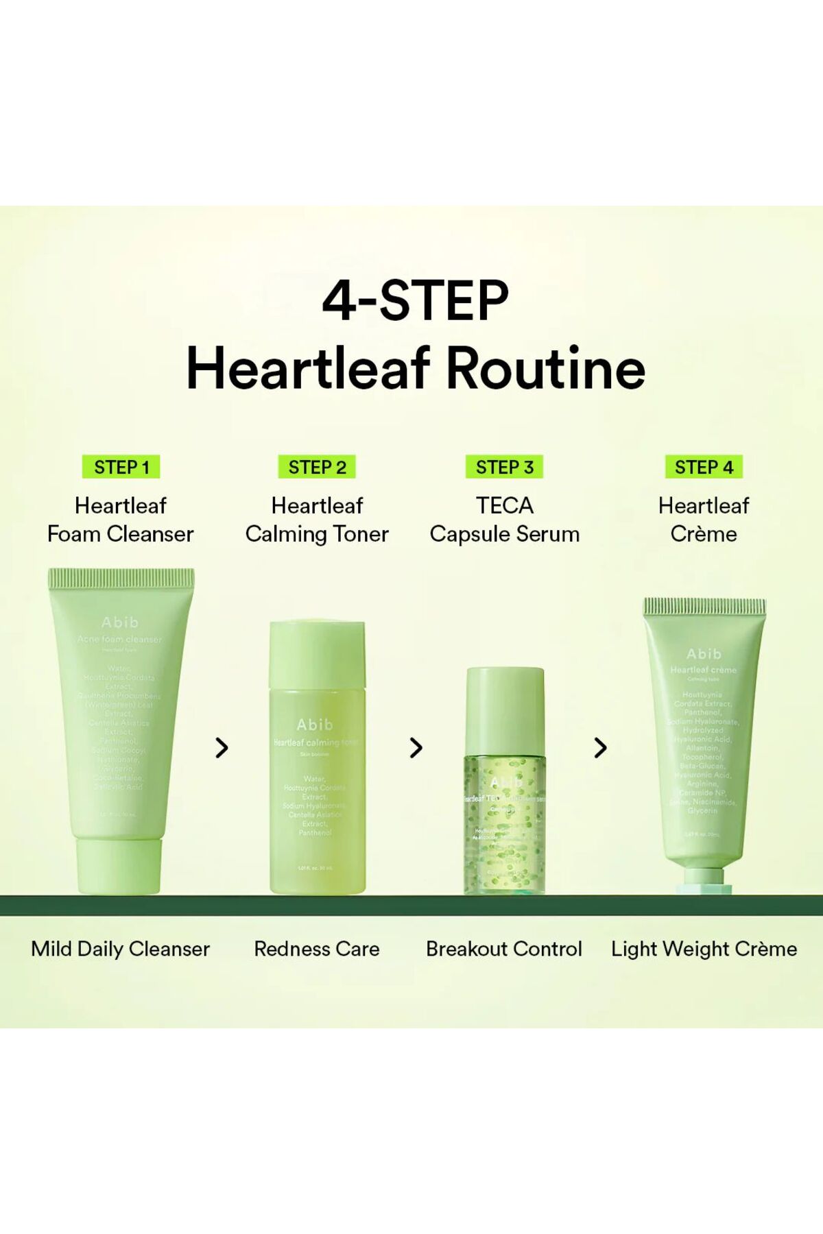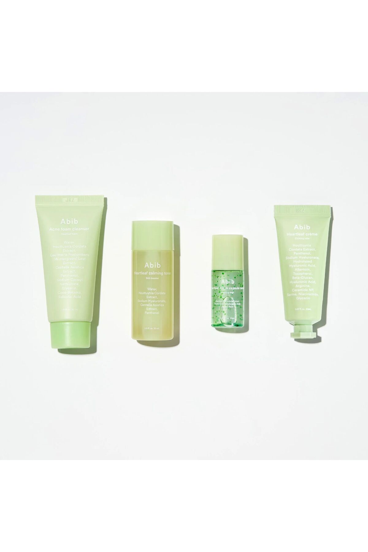 Abib Heartleaf Calming Trial Kit – 4’lü Mini Set (Foam + Toner + Serum + Cream)