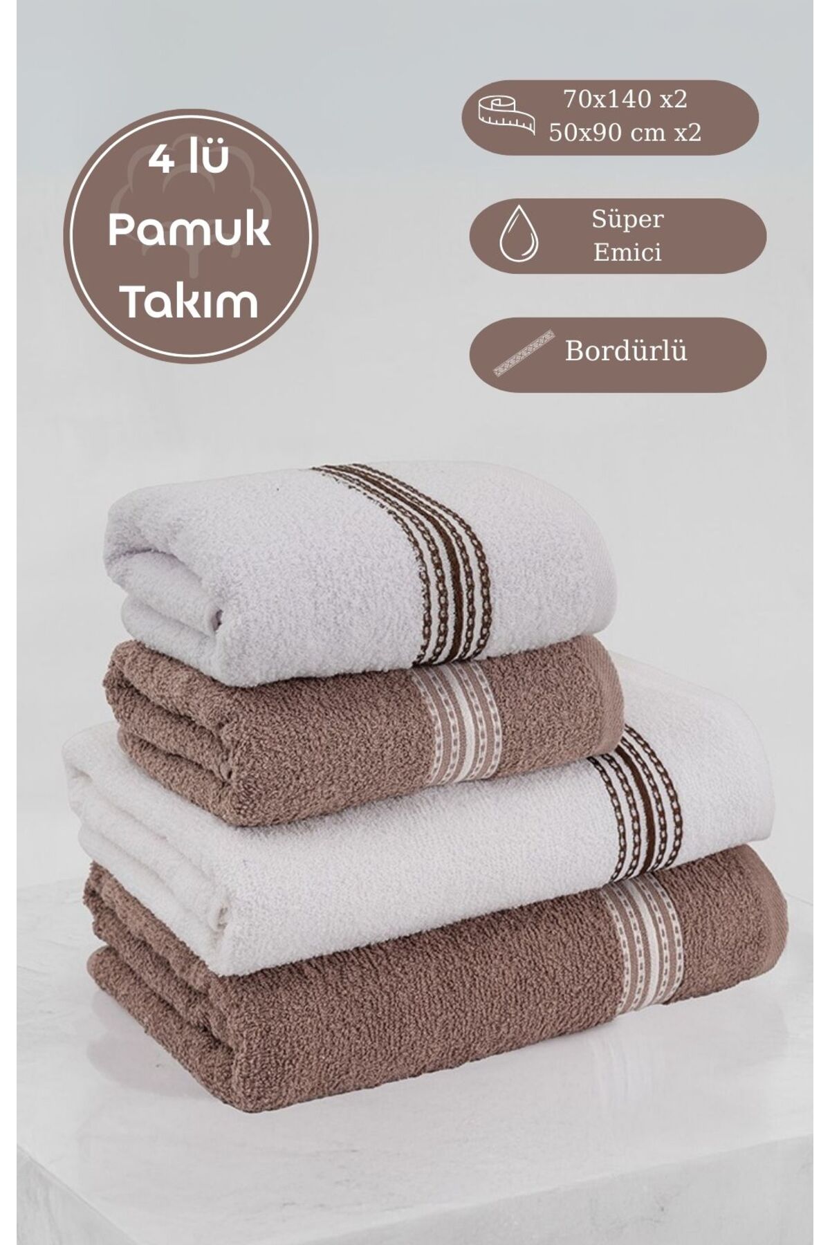 Acacia 4'lü Pamuk Banyo - El Havlusu Seti Elvin 70x140cm X2 / 50x90cm X2 Kahverengi - Beyaz ürününü en uygun fiyata kozmetikara.com sitemizden sipariş verebilirsiniz.