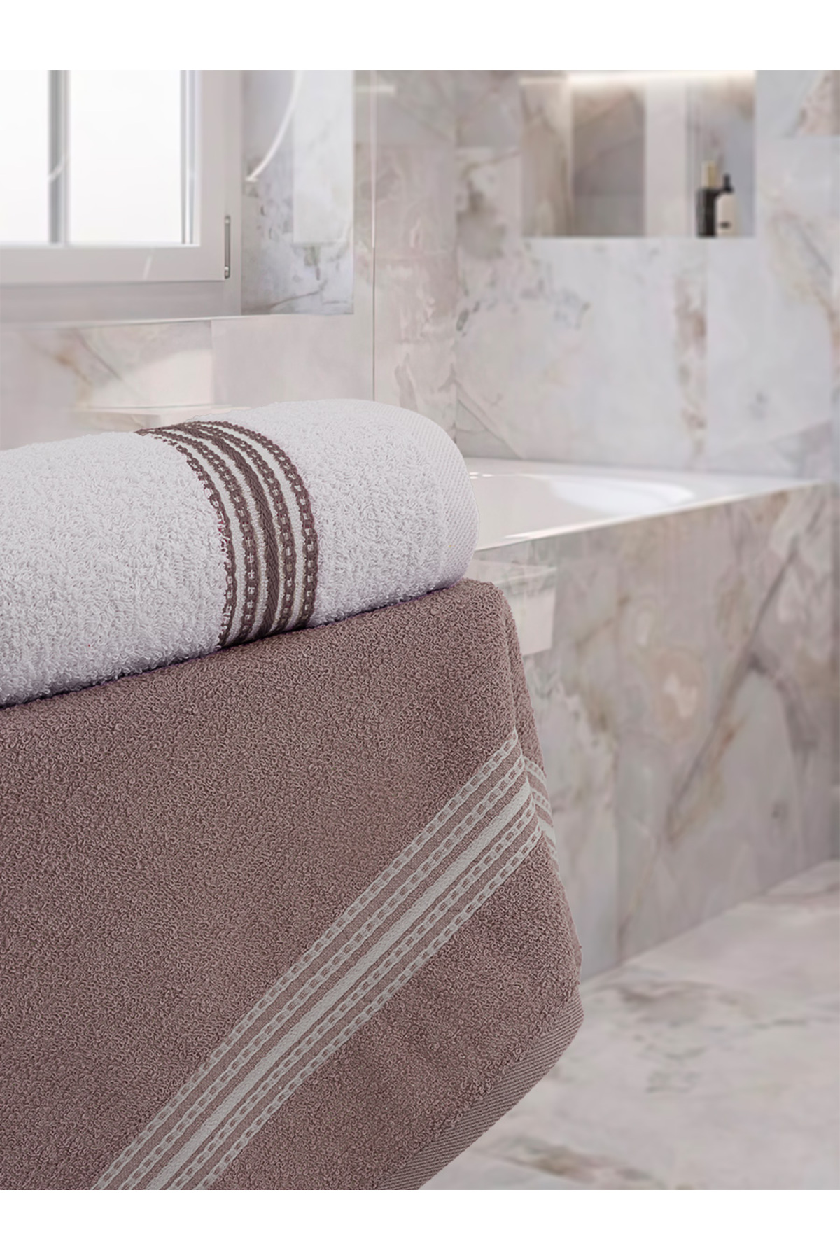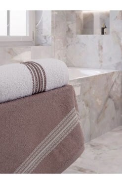 Acacia 4’lü Pamuk Banyo – El Havlusu Seti Elvin 70x140cm X2 / 50x90cm X2 Kahverengi – Beyaz