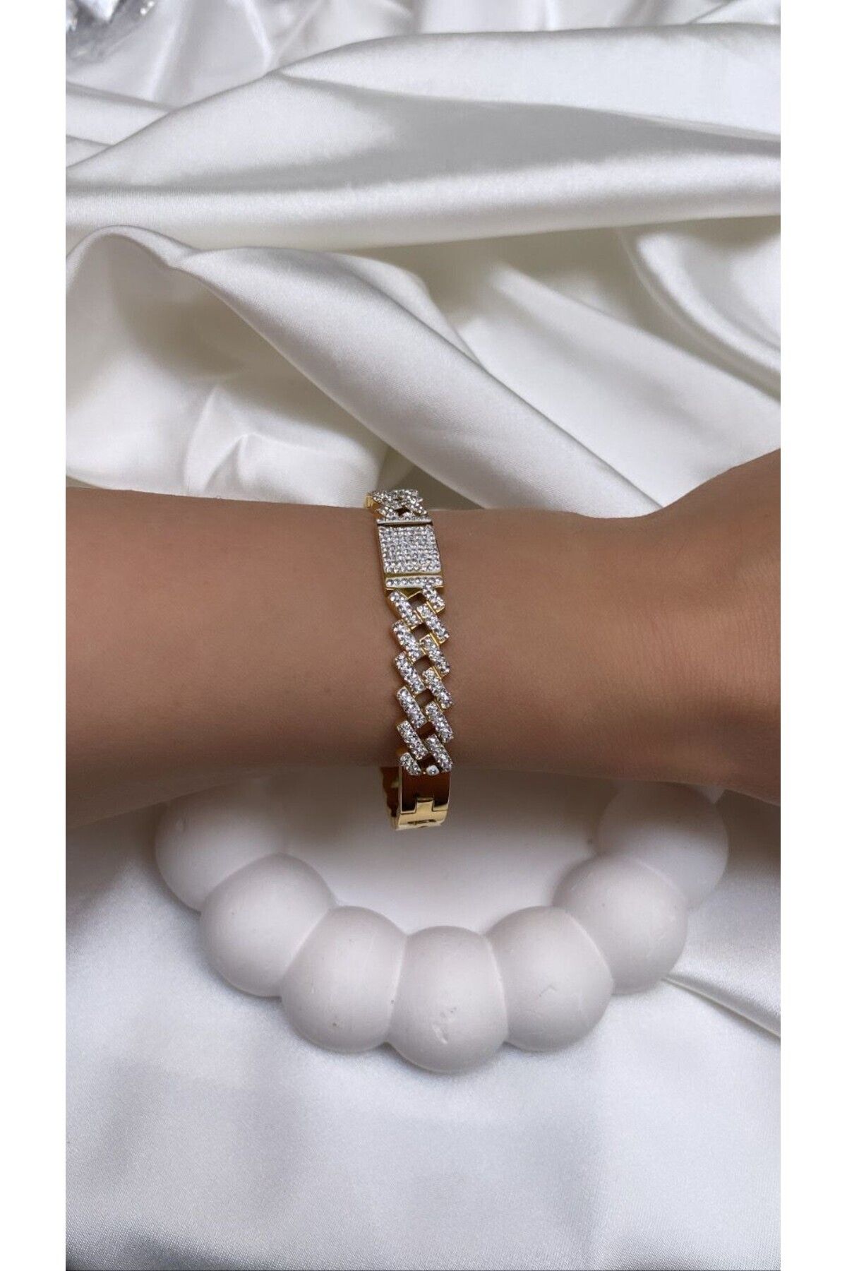 Accessories Taşlı Çelik Gold Renk Kelepçe