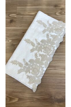 Acurmans Tekli Çeyizlik Havlu (Ekru) Gardenya Desen Fransız Danteli