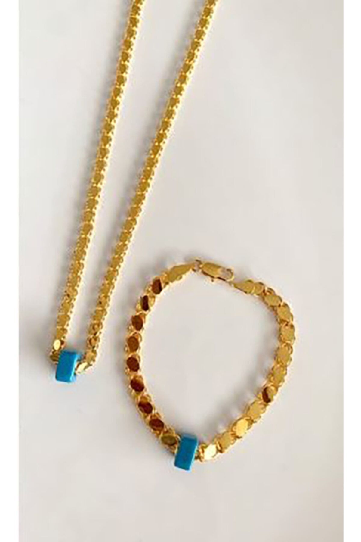 Ad Altın Kaplama Halep Arpa Zincir Kolye Ve Bileklik Takı Seti