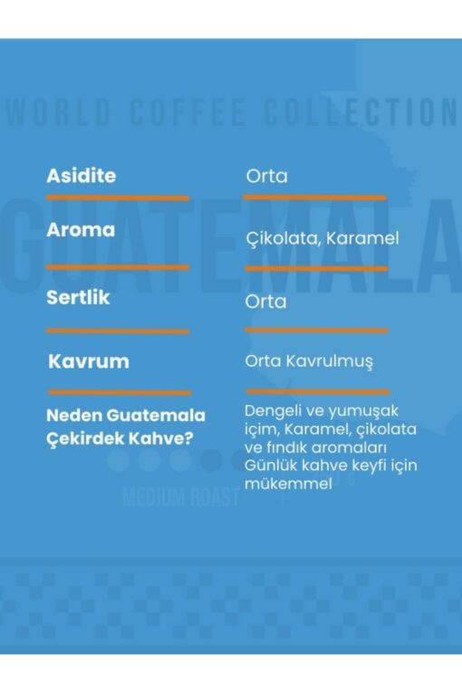 Genel olarak Guatemala kahve çekirdekleri yoğun aroması, orta sertlik içimi ve yüksek gövdesiyle vazgeçilmezleriniz arasına girecek bir kahvedir