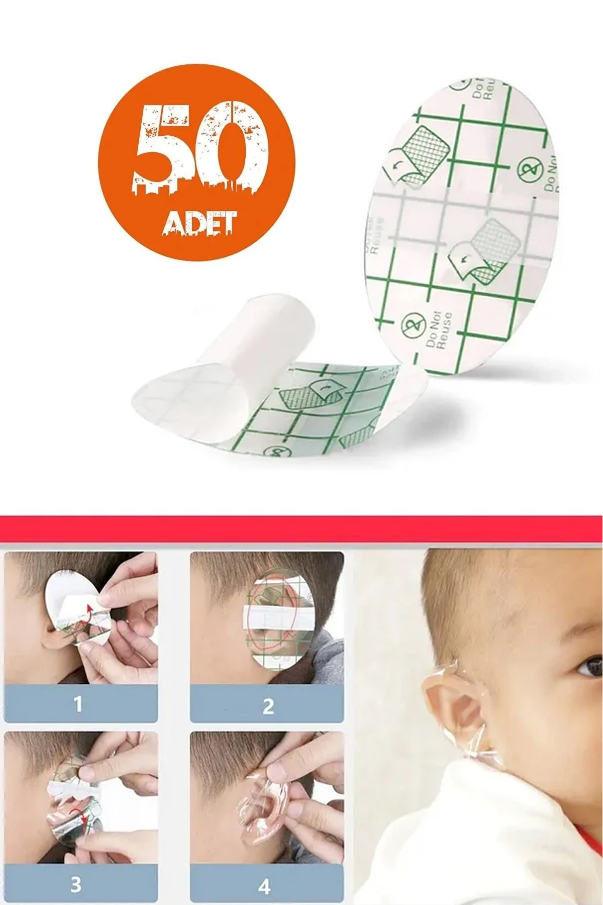 adornazzle 50’li Bebek ve Çocuk Kulak İçin Su Geçirmez Bant, Bebek Kulak Koruyucu Bant, Duş Kulak Koruma ürünü ucuz fiyat, hızlı kargo imkanı ile hemen sitemizden sipariş verin.
