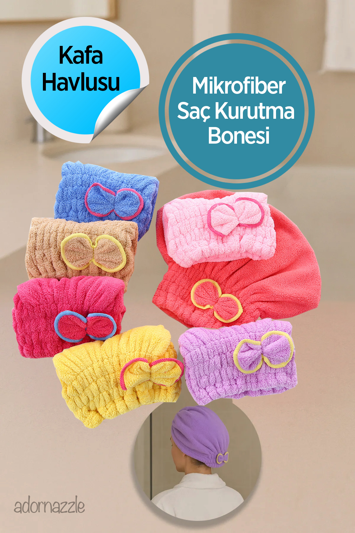 adornazzle Mikrofiber Saç Havlusu, Saç Bonesi, Banyo Havlusu, Kurutma Havlusu ürünü ucuz fiyat, hızlı kargo imkanı ile hemen sitemizden sipariş verin.