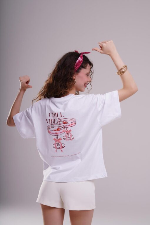 AFLOOW Kadın Beyaz Oversize Tişört - Chill Vibes Baskılı ürününü en uygun fiyata kozmetikara.com sitemizden sipariş verebilirsiniz.