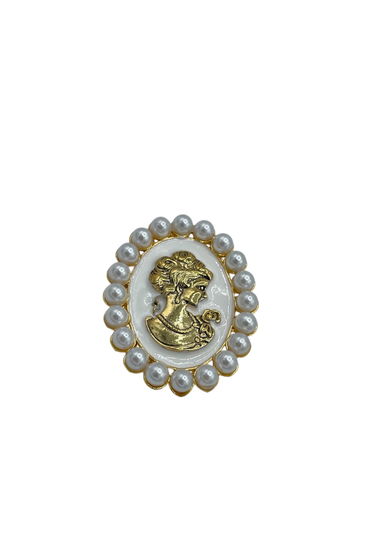 AGAPI İnci Detaylı Cameo Kadın Figürlü Broş – Altın Renk Kaplama Vintage Broş
