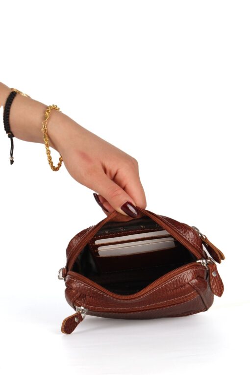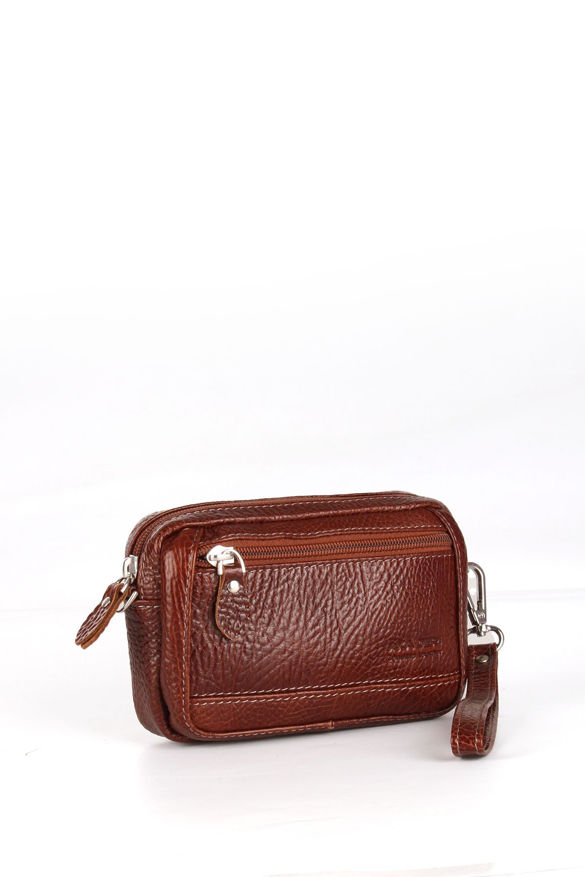 Deri Çanta Ölçüleri 16 cm – 11 cm Deri Çanta Özellikleri Ön Kısmında Fermuarlı Cep Bulunmaktadır Fermuarlı Geniş Bölmesi Bulunmaktadır İç Kısımda Kart Bölmeleri Bulunmaktadır Hakiki Dana Derisi olup Modeli AKA markasına aittir.