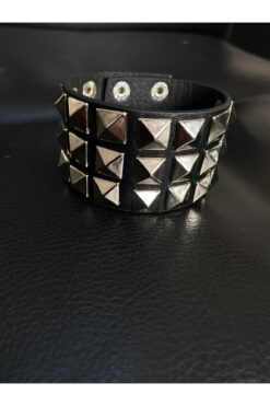 Aksabeltchokers 4.cm Üç Sıralı Piramit Gothic Metalci Bileklik 20.cm