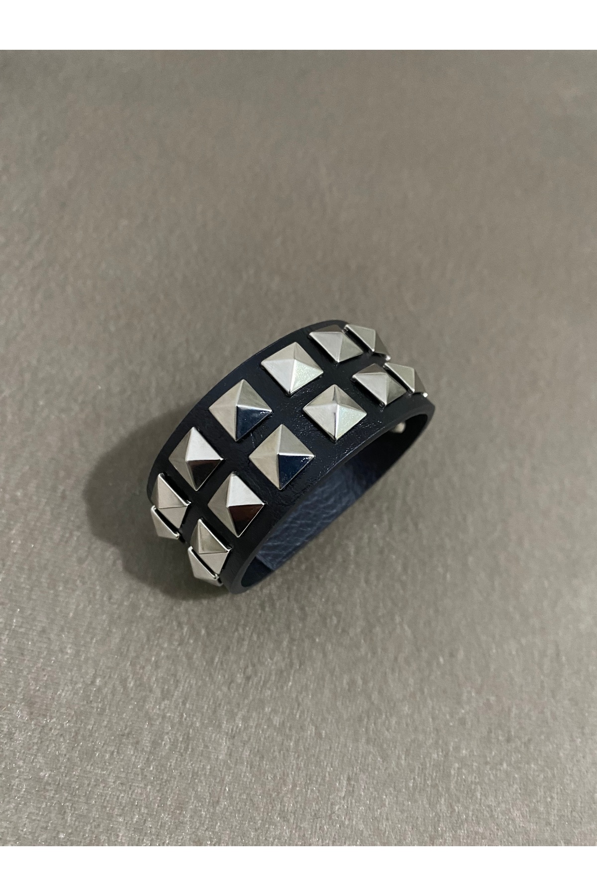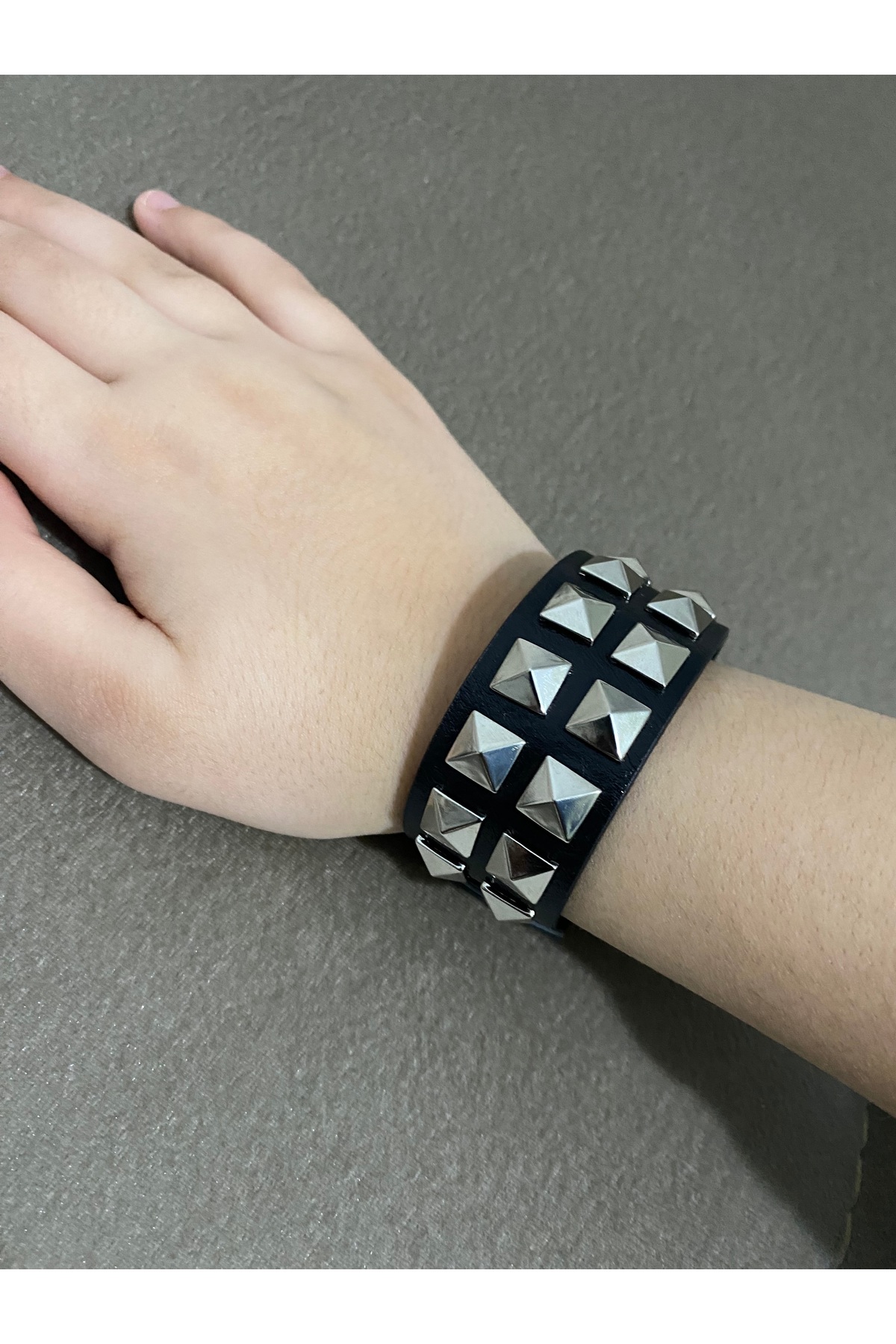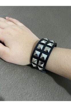 Aksabeltchokers Çift sıralı piramitli çakımlı vintage bileklik