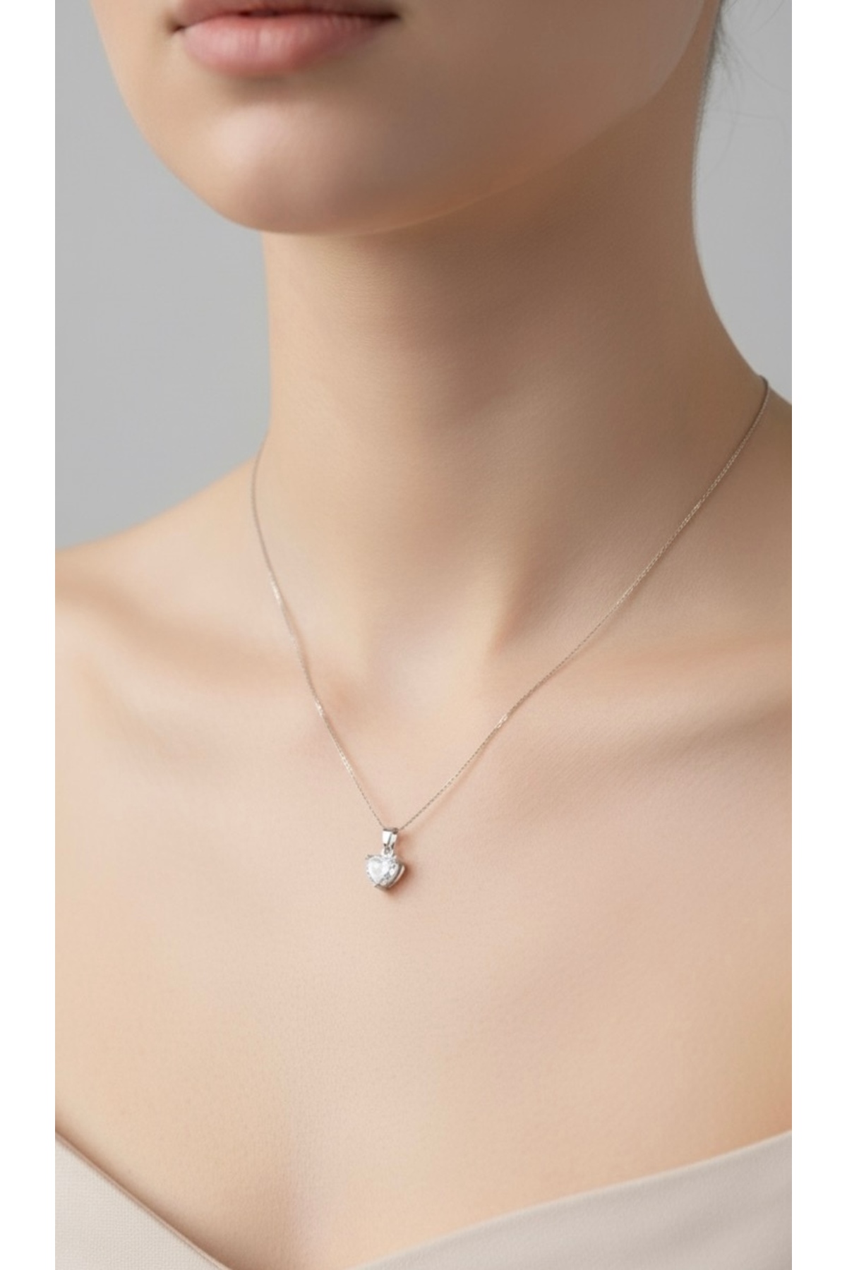 Aksesuar Tek Taş Kalp Çelik Kolye