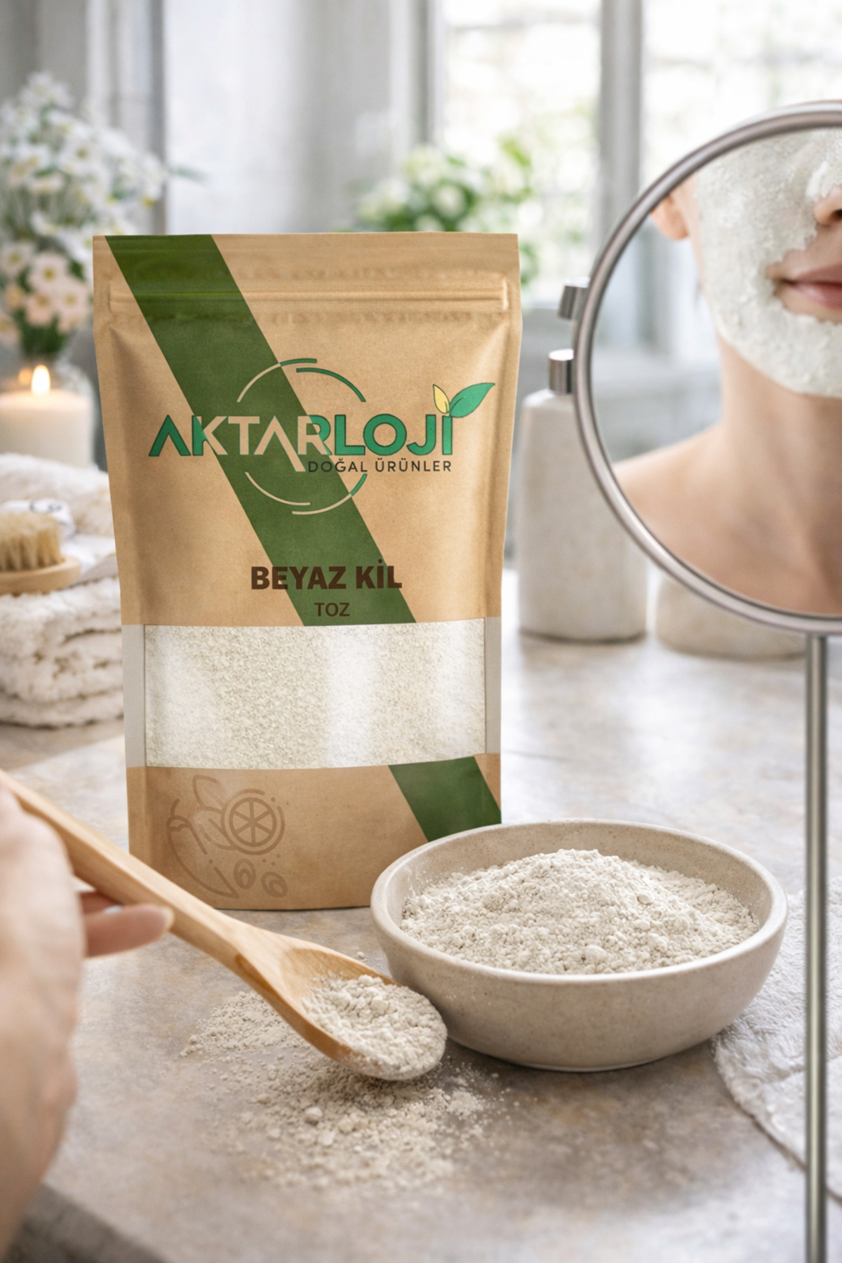 aktarloji 1 Kg Toz Beyaz Kil – Doğal Cilt, Yüz ve Saç Maskesi / White Clay Mask