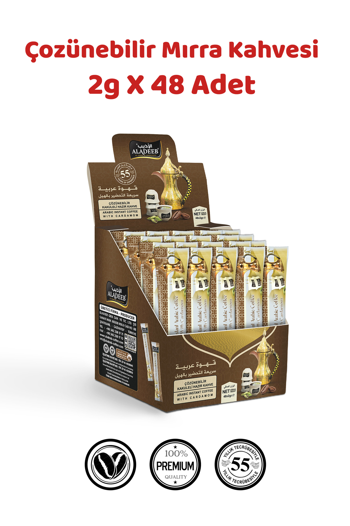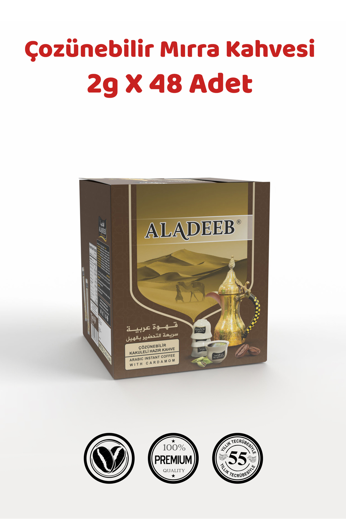 ALADEEB Mırra Acı & Çozünebilir Kakuleli Hazır Kahve – 48 Adet Tek İçimlik Poşet 2gr*48 adet