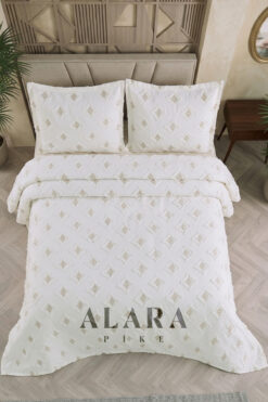 Çeyiz Diyarı Yıldız Çift Kişilik Kapitoneli Yatak Örtüsü Krem
