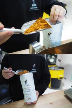 Hazırlama Önerisi:Cezveye her kişi için iki çay kaşığı ( 7 gr ) Alesta Coffee Türk Kahvesi ve bir fincan klorsuz içme suyu ilave ediniz.