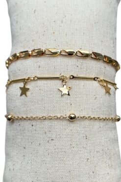 Alexis Carrel 3’lü Kadın Yıldız Bileklik Seti – Gold Renk Dorika Boncuklu Kombin Takı / Kombin Bileklik Takım