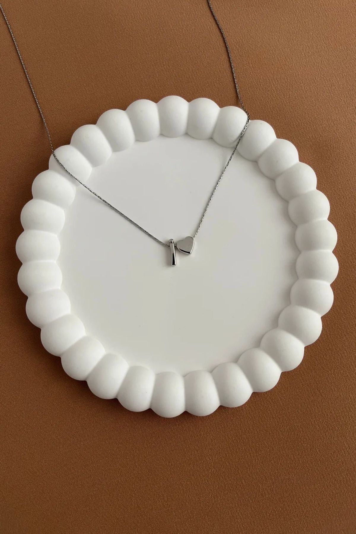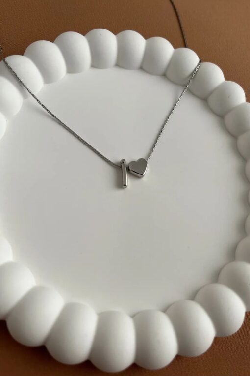 Alexis Carrel Çelik Zincirli I Harfli Kolye, Kalp Detaylı Gümüş Renk Harf Kolye