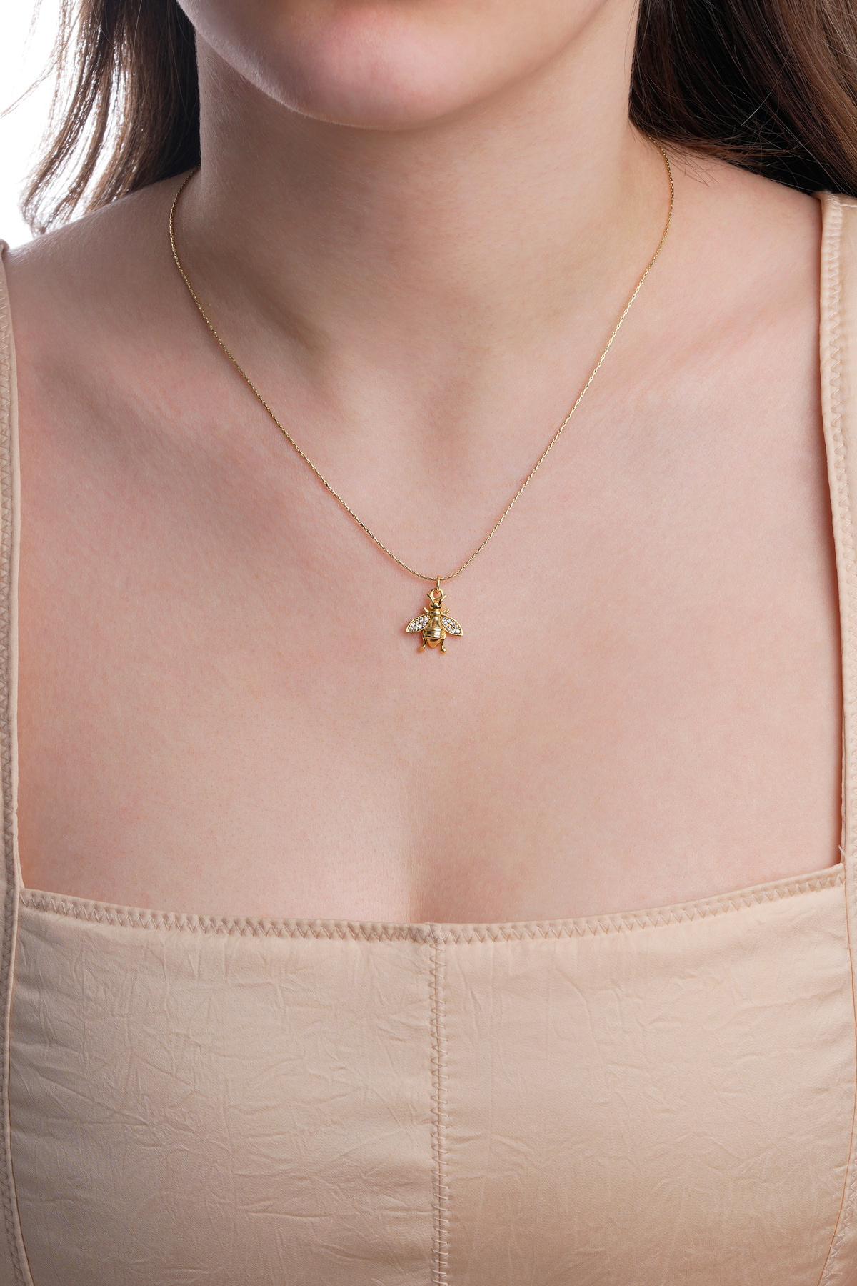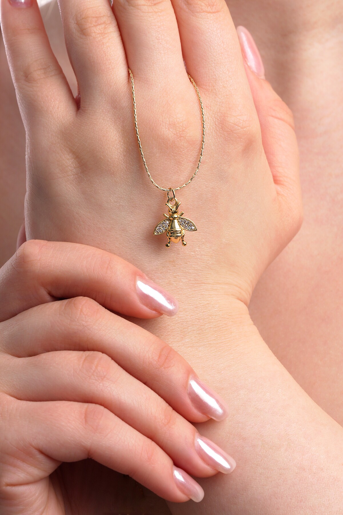 Alexis Carrel Minimal Arı Kolye – Zirkon Taşlı Işıltılı Arı Figürlü Takı
