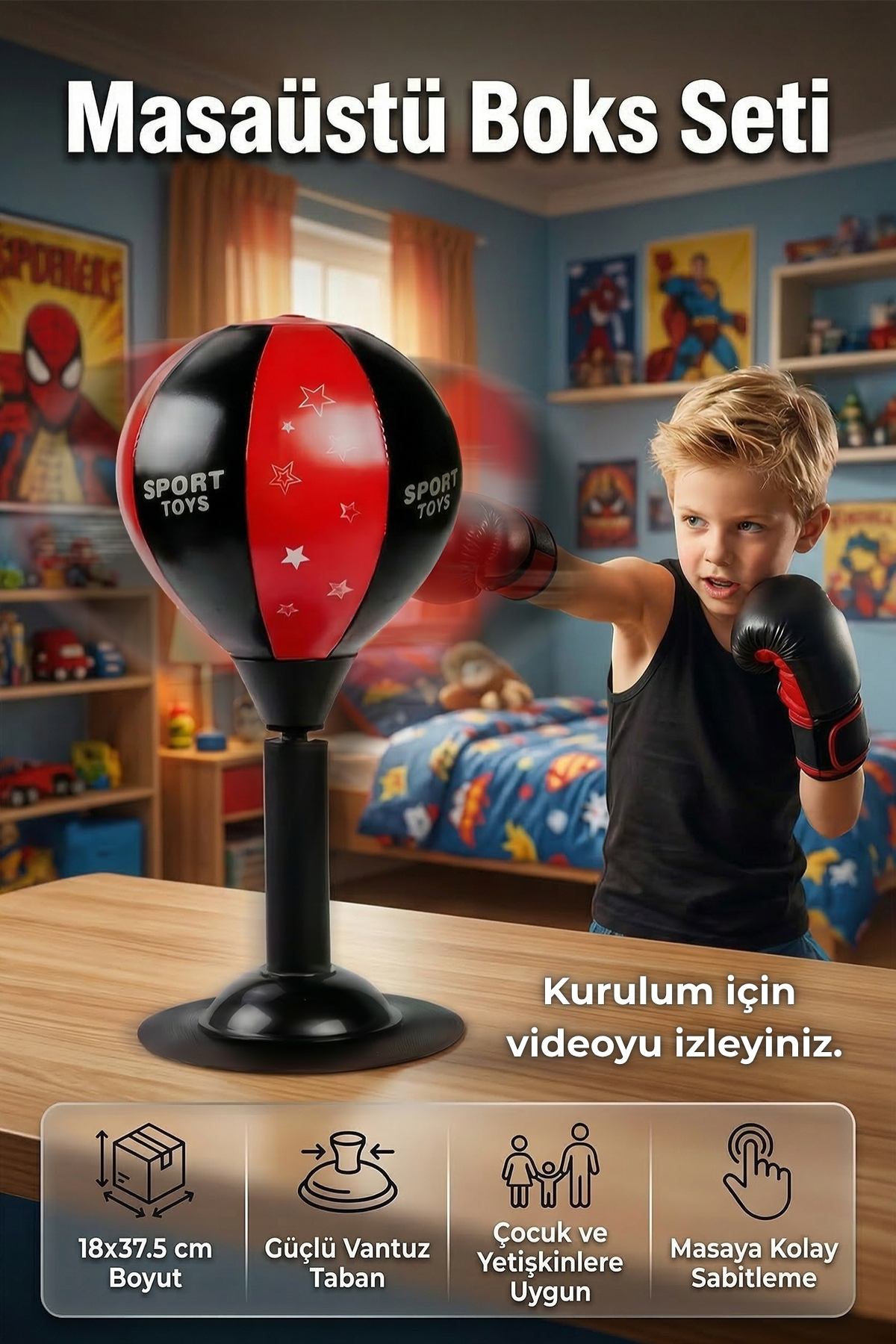 ALFAGİFT Masaüstü Vakumlu Boks Torbası- Vantuzlu Refleks Boks Topu Pompa Hediyeli