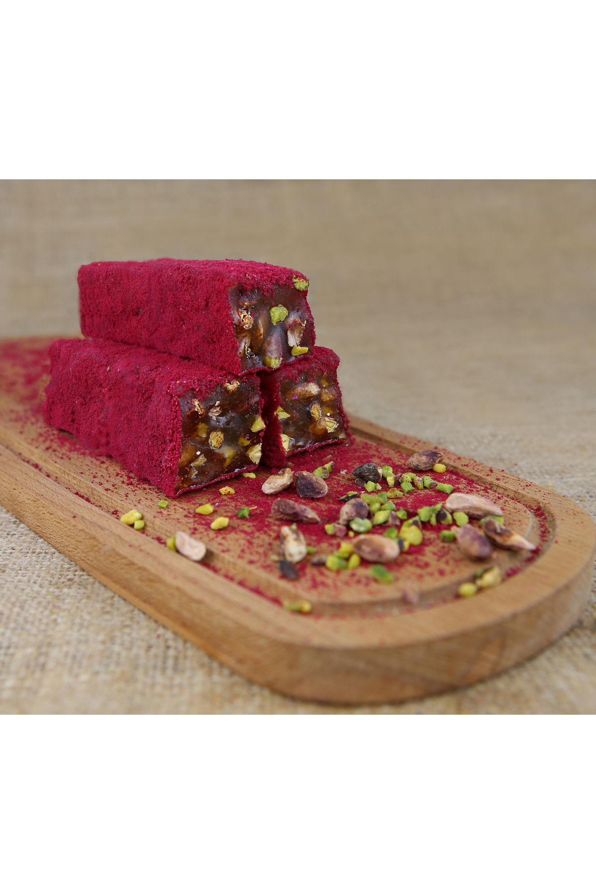 ALİBABA GIDA Kırmızı Velvet Kaplı Bal Aromalı Antep Fıstıklı Lokum 1 kg