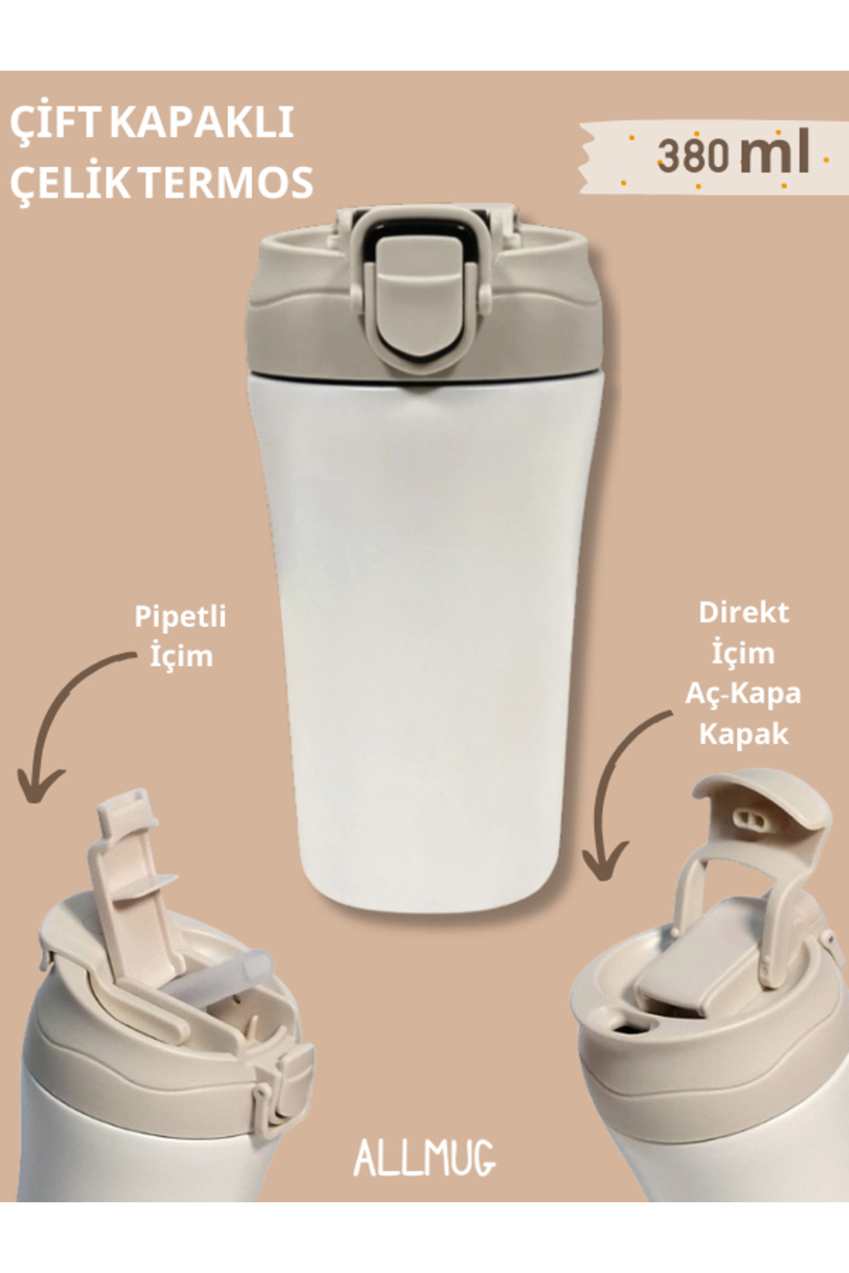 ALLMUG Pipetli Çift Kapaklı Paslanmaz Çelik Termos