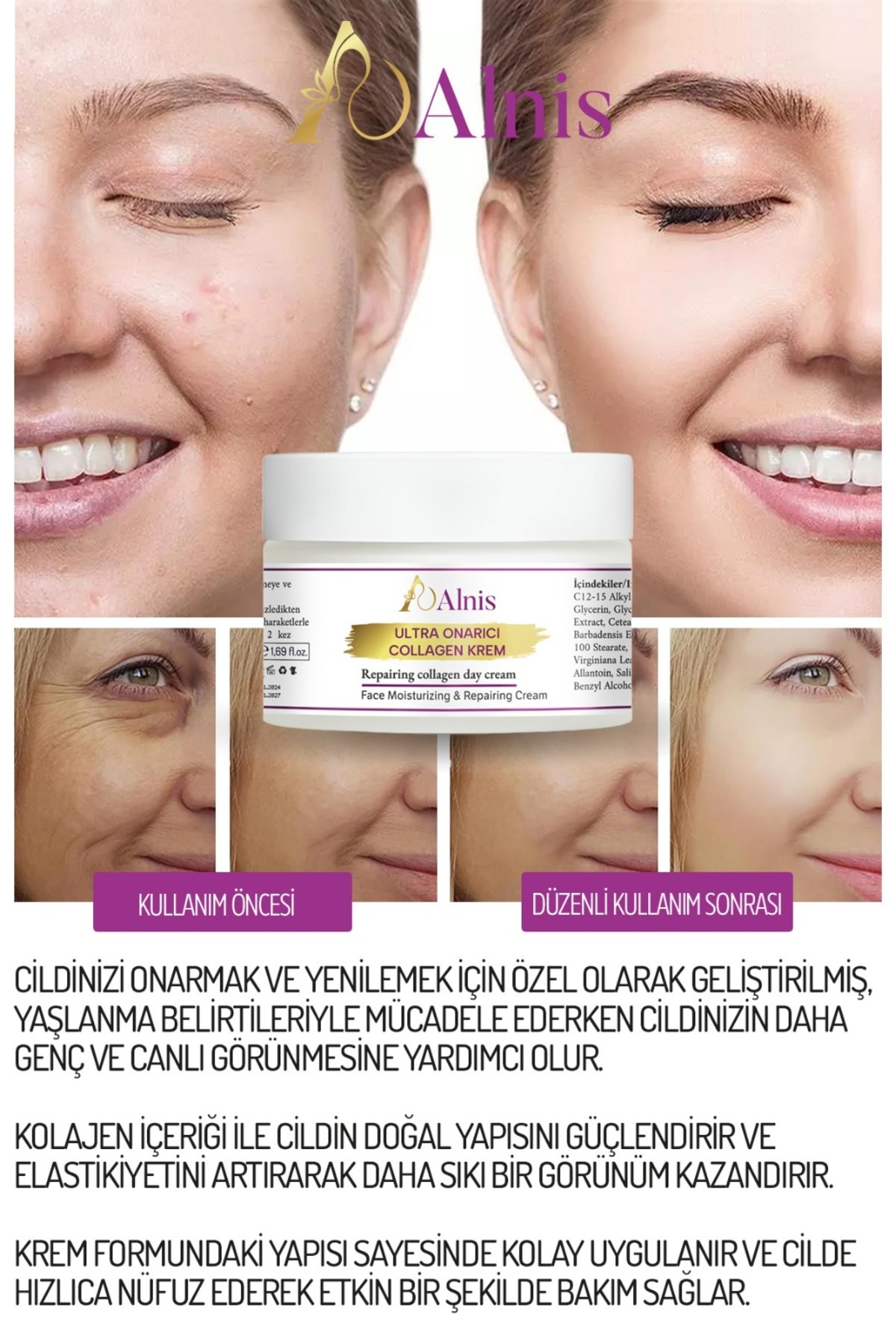 ALNİS Alnis Collagen Yüz Kremi 50 ml – Günlük Nemlendirici, Ultra Onarıcı, Aloe Vera Içerikli ürünü ucuz fiyat, hızlı kargo imkanı ile hemen sitemizden sipariş verin.